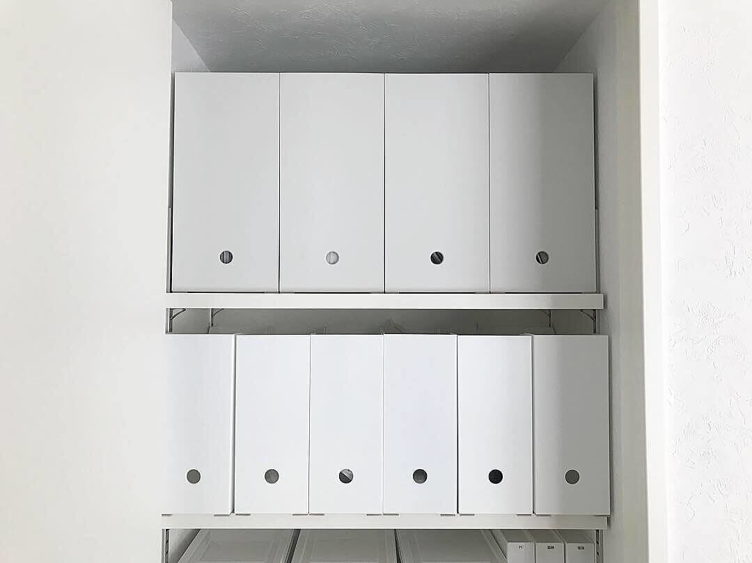 2段目はニトリの「A4ファイルケース(オールホワイト)」を使用しています。