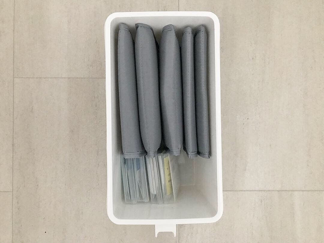こちらはブック型なのできれいに並べることができ、サイズも隙間を埋めるのにちょうどよく、余りなく収納できるのでおすすめです。