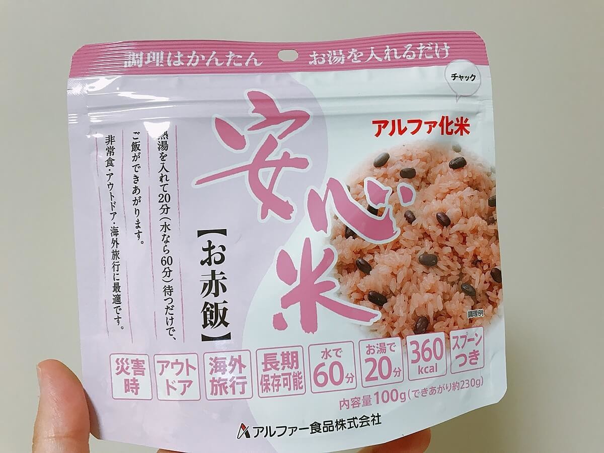 安心米の名の通り、水さえあればご飯が食べられる「アルファ化米」。