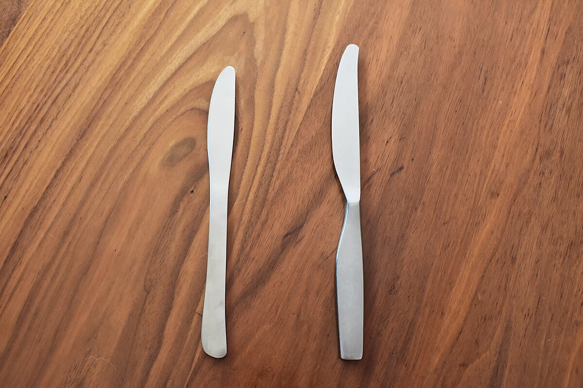 ▲左:ニトリ、右:イッタラ。ナイフに関してはまったく別物。ニトリは凹凸がない。
