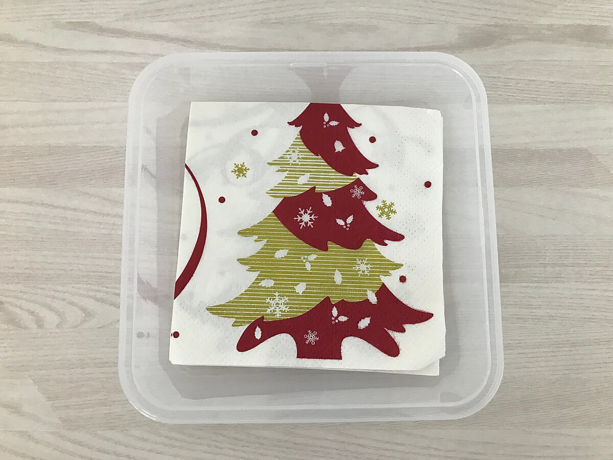 正方形のこちらの容器はペーパーナフキンがぴったり!