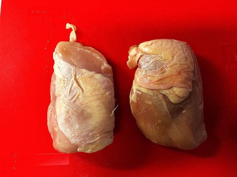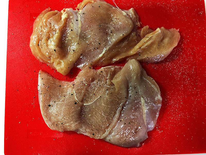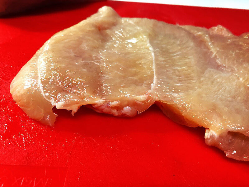 胸肉は、分厚いので、観音開きなどにして、厚みを薄く均等にするのがおすすめ。