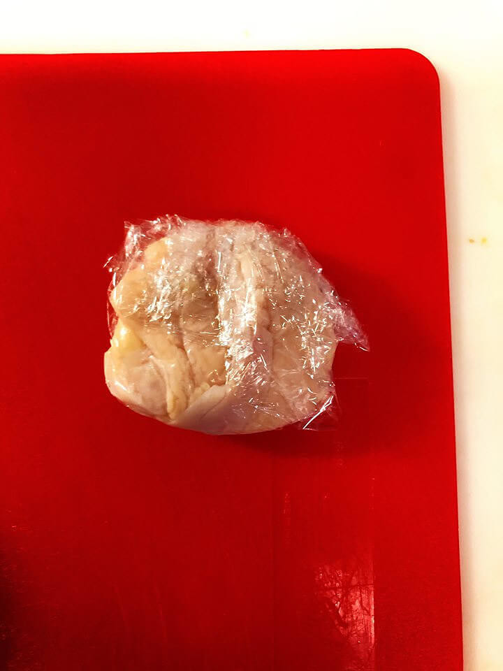 2、鶏胸肉を開きます。