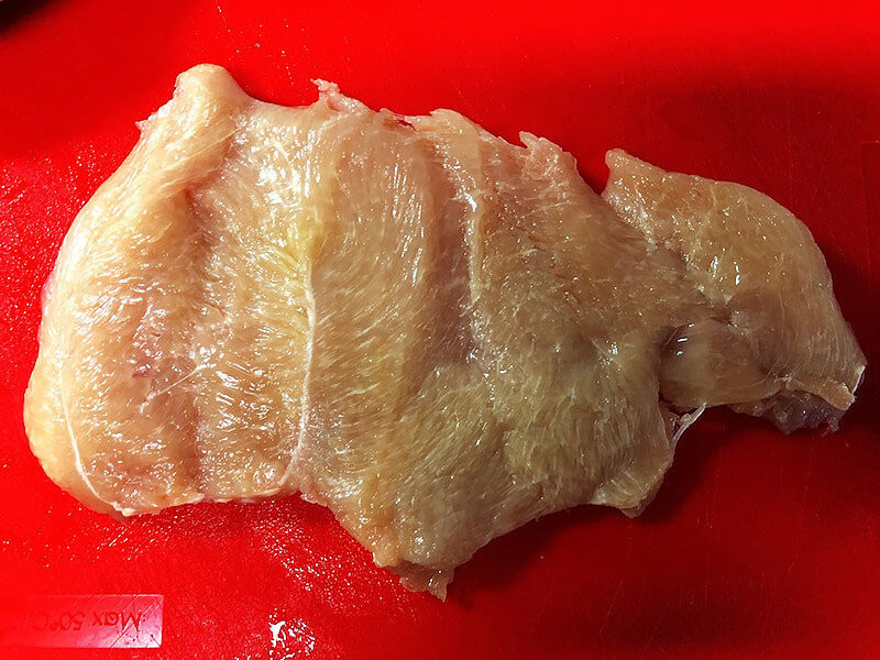 1、鶏胸肉の皮を取り除きます。