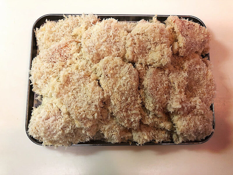 大量のチキンカツの揚げる前が完成!!!
