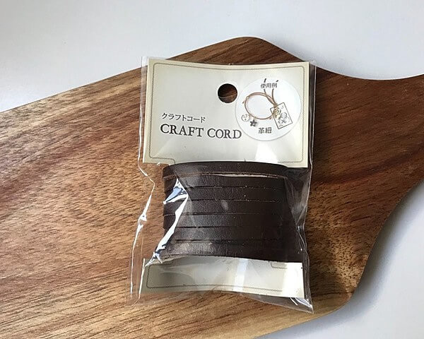 こちらはセリアのクラフトコーナーにあった革ひもを利用しました。
