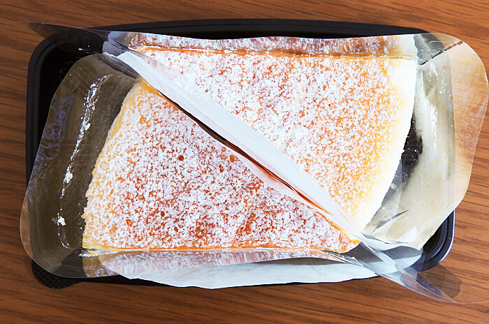 味はチーズ自体は濃厚ですが、かなり甘めです。クセのないシンプルな味わいでした。なお、前述の「バスクチーズケーキ」と違い、たまごの味も私にはわかりませんでした。
