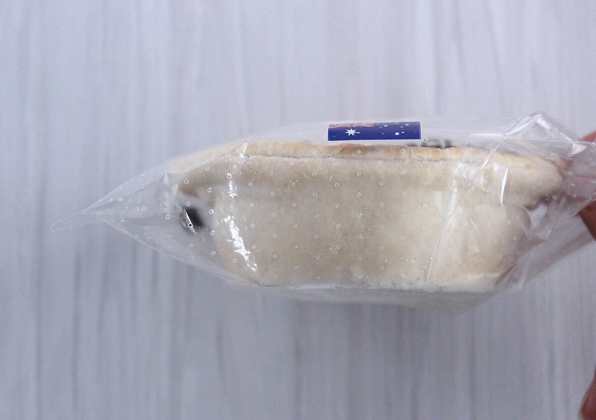 パッケージにある食べ方は、凍ったままの状態のパイをこちらの包みに入ったまま、1個あたり600Wで2分加熱し、そのまま2分ほど置いていただくと書いてありました。