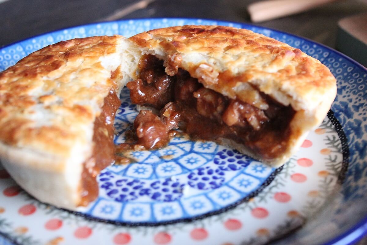 9時間かけてゆっくりと調理したチャンキーアンガスビーフパイ。チャンキーには塊の、分厚い、などの意味があります。また食品に使う時は、ゴロゴロとかたまりで入っていることを意味します。