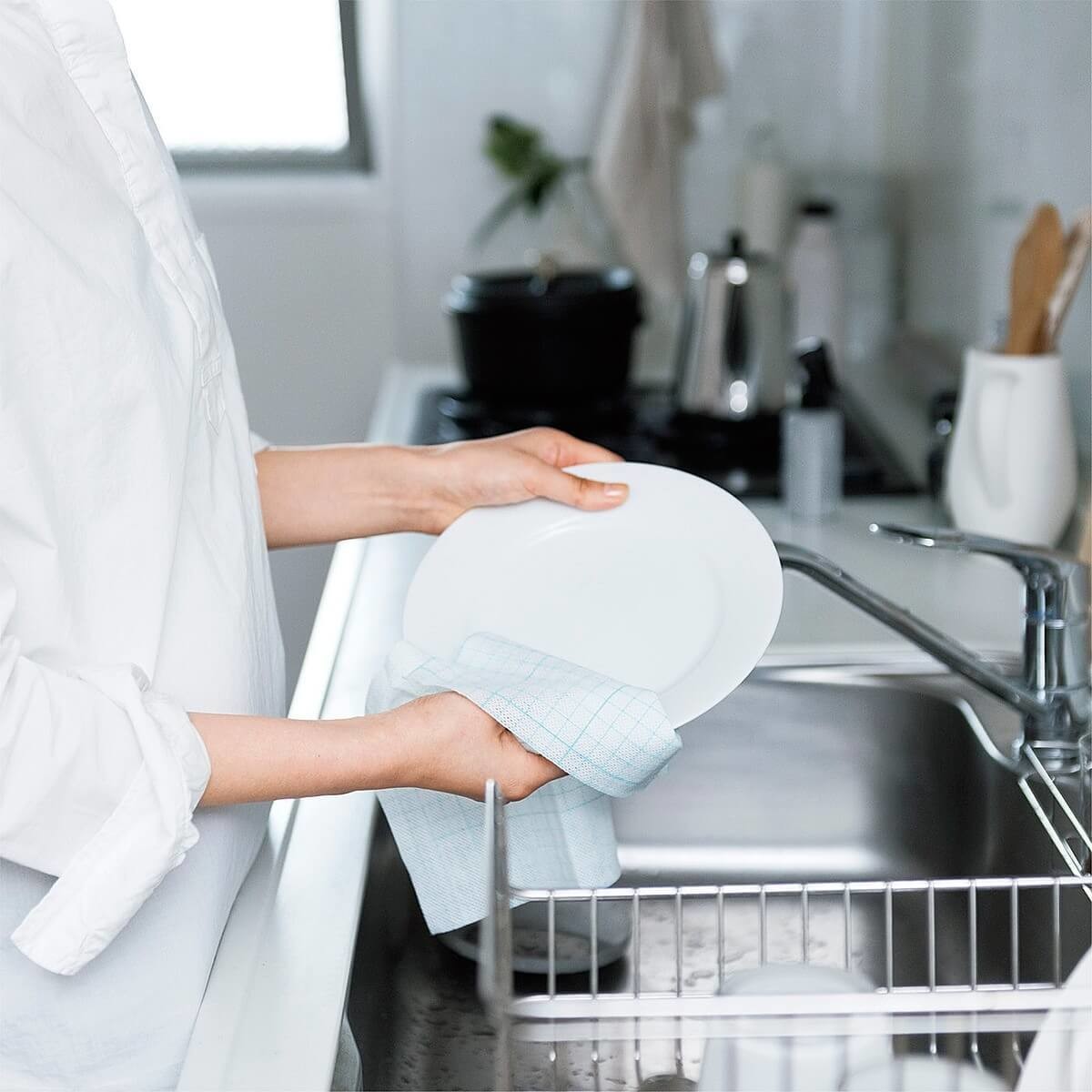 水切れが良く乾きやすいポリエステルメッシュ素材で、食器洗いでもいい仕事をしてくれますよ。