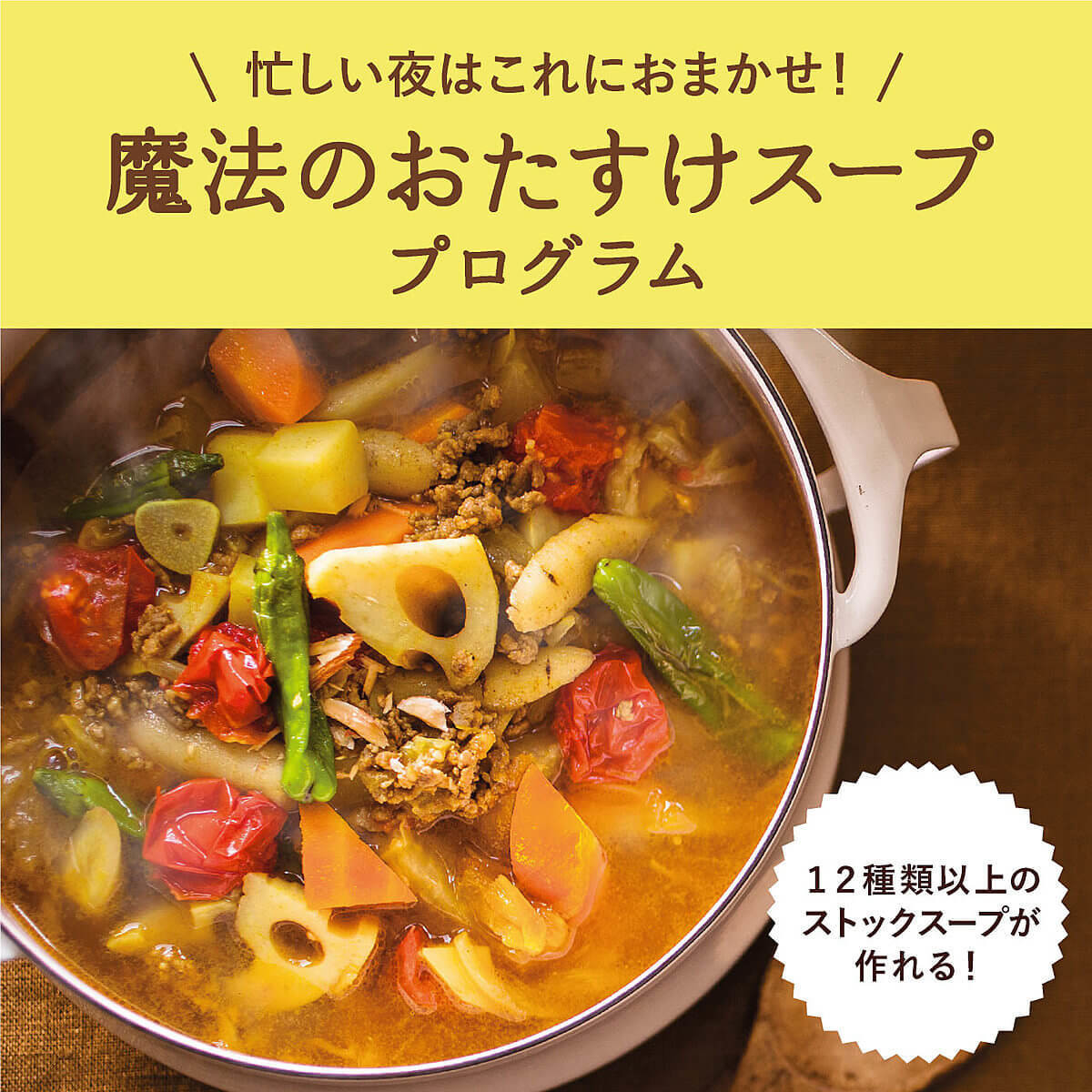そんな方にはフェリシモ「魔法のおたすけスーププログラム」がおすすめ。休日に下ごしらえをすることで、たった10分でおいしいスープが作れる時短ワザが満載です。