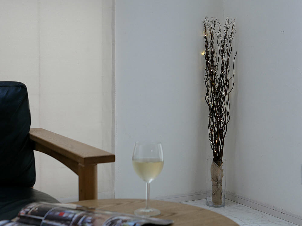 ガラスのフラワーベースに入れて、お部屋のコーナーに置くだけでフロアライトとしても、インテリアとしてもお洒落で存在感は抜群。