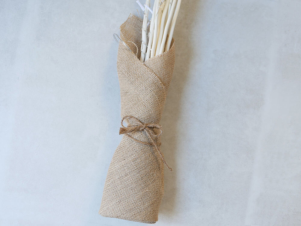 枝を束ねるように、ナチュラルな雰囲気の麻布が巻かれているので、フラワーベースなどに入れずにそのまま飾ることができます。