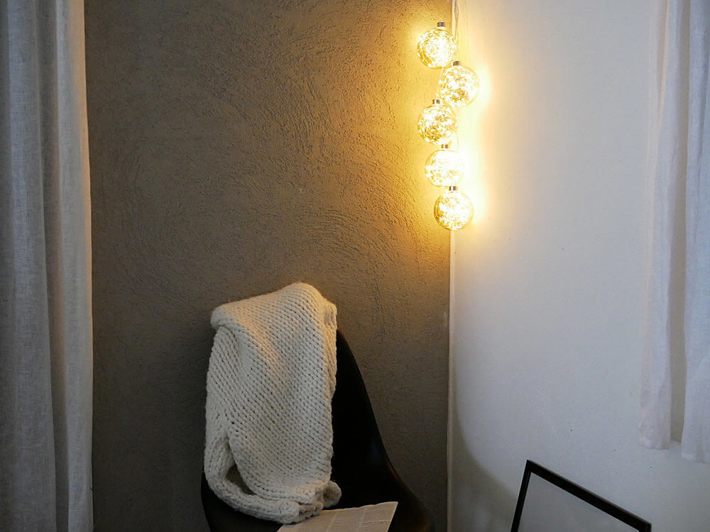 大きめなボールライトがゴロゴロと5つも付いたボリューム感のあるイルミネーションライトは、お部屋に1つ飾るだけでアクセントになり、一気にクリスマスムードが高まります。
