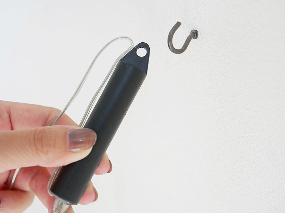 5つのボールを束ねているスティックの先端はフックになっているので壁掛けしやすいのが◎。