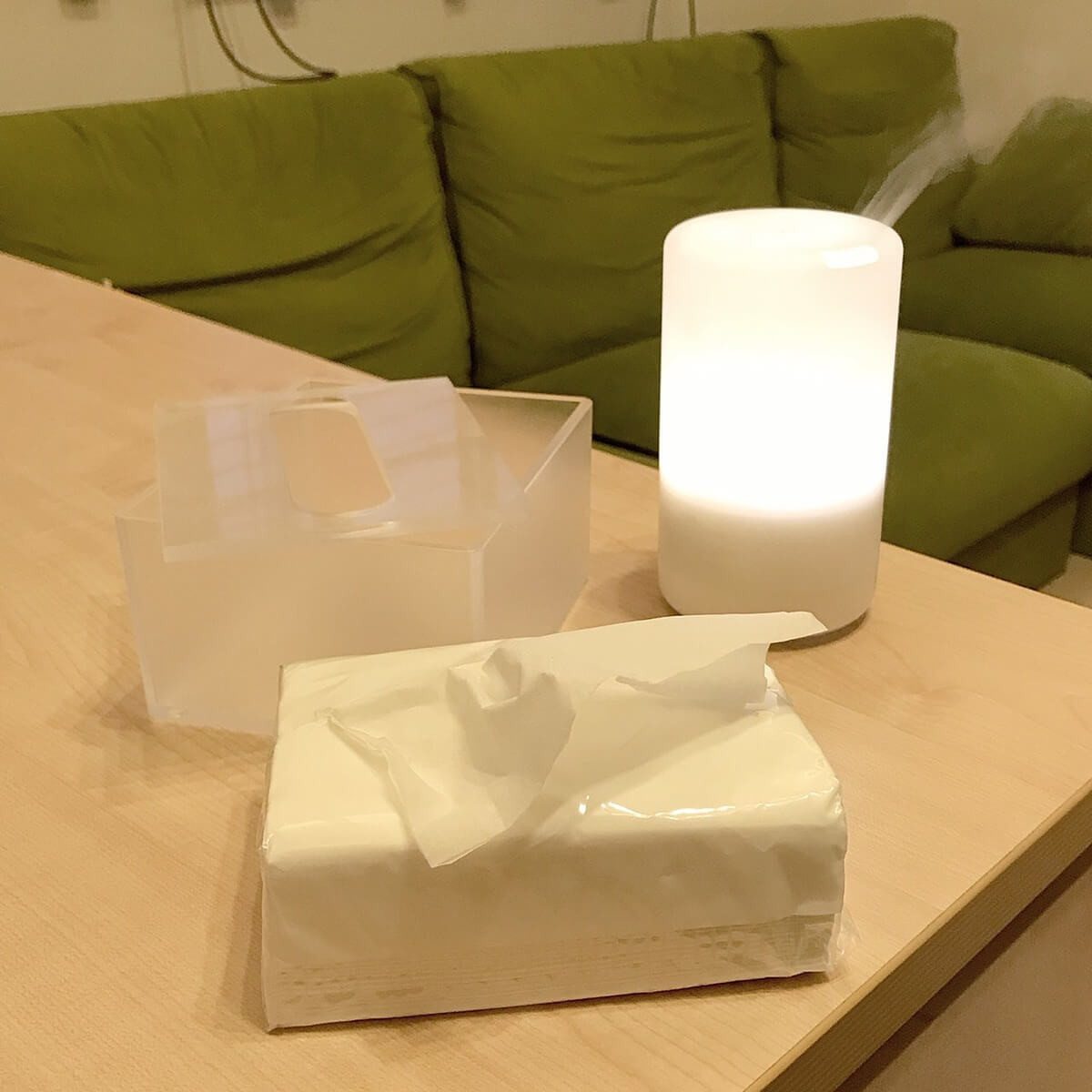 以前子供部屋用に買った普通サイズのアクリルティシューボックスのかっこよさが気に入って、小さいものも欲しくなってしまいました。