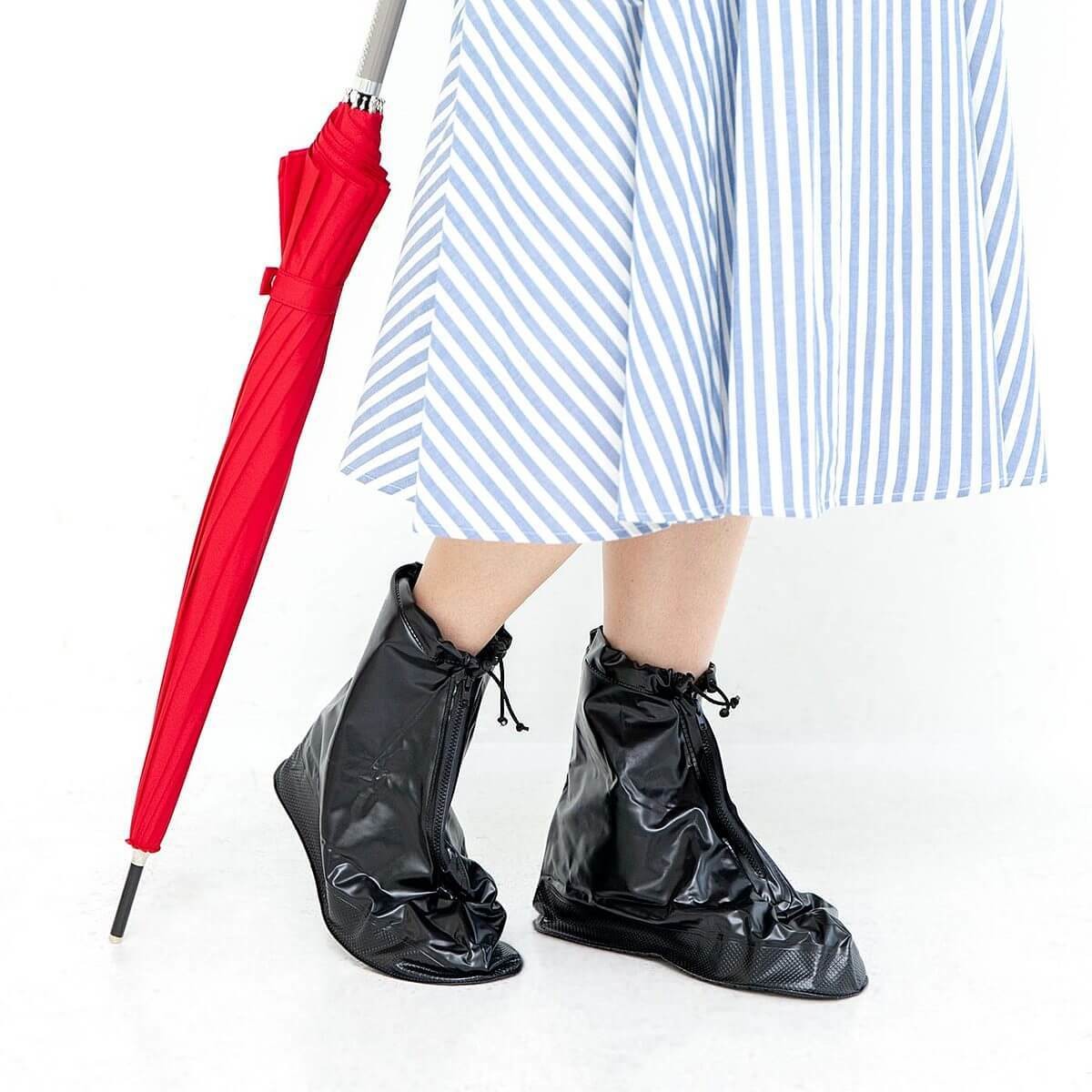 急な雨でも持っていれば安心な、靴の上から履くフェリシモの「シューズレインカバー」です。 大雨で地面がぬかるんでいるときにも、装着すれば大切な靴を雨や泥はねから守ってくれますよ。