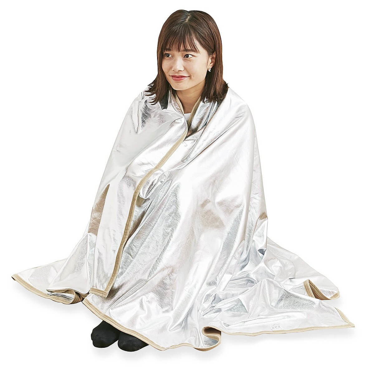 フェリシモの「ふんわりあったか防災毛布」は、薄手なのにあったかい外側がアルミ仕様になった毛布です。 全身をすっぽり包めるシングルサイズなので、災害時には体を冷えからしっかり守ってくれます。