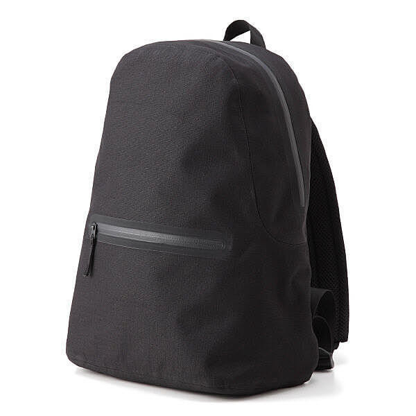 耐水加工を施した生地を採用したリュックサックです。ファスナーの隙間からも雨が侵入しないように、縫い目の裏に防水テープが貼り付けられています。