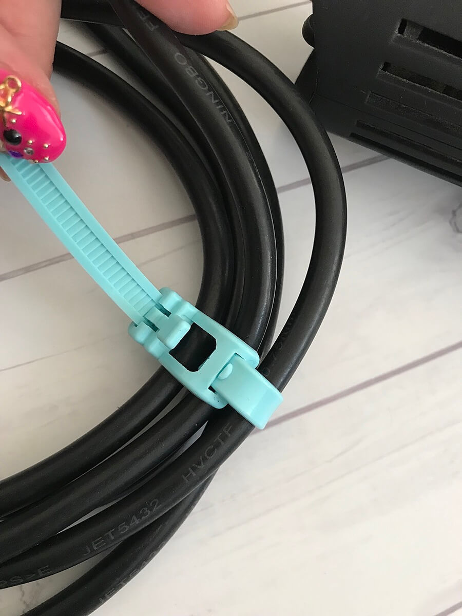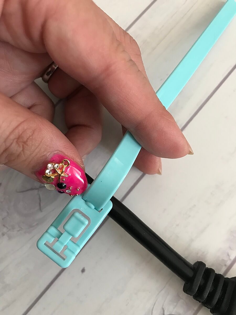 この突起がベルトを巻いた際にストッパーの代わりになってくれるんです。なので、まとめたコードを外した際にもベルトはコードについたまま! つまり、ベルトだけが外れてどこかに落ちる心配もなし!