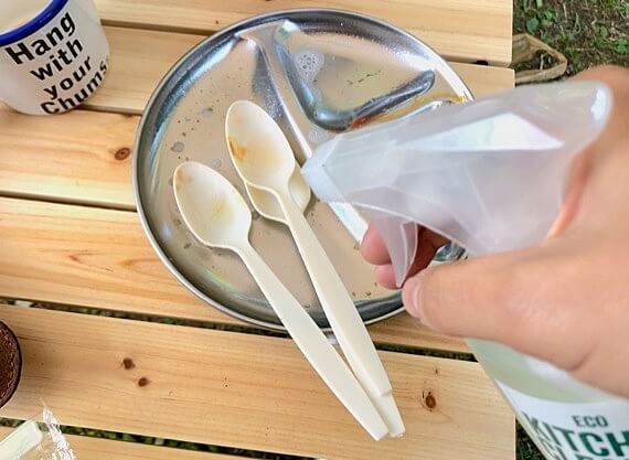 もちろん水ですすいでもいいですし、水がもったいない時は布巾で拭き取ればOK。水を一切使わずに清潔に保てます。 アウトドアだけじゃなく、断水時にも活躍してくれそうですね。