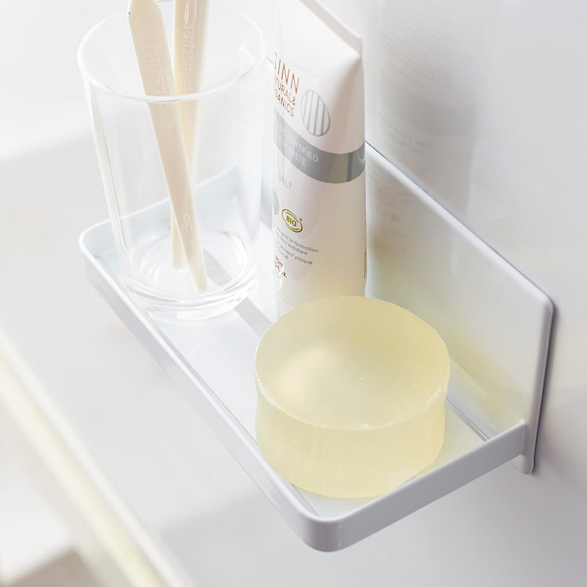 マグネット対応の壁面や洗濯機には、フェリシモの「取り付け簡単マグネットラック」が活躍してくれます。 裏面がマグネット仕様になっているので、設置したい場所に簡単に取り付けOK。
