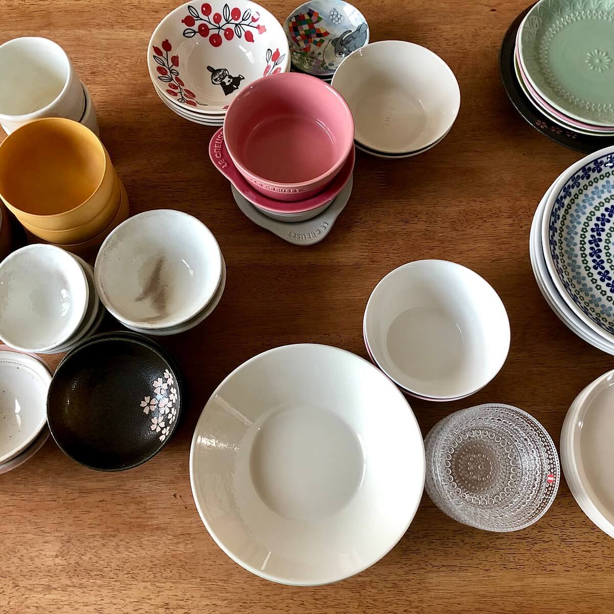 筆者は、『よく使う和食器』『洋食器』『平皿』『イッタラ』に分類しました。