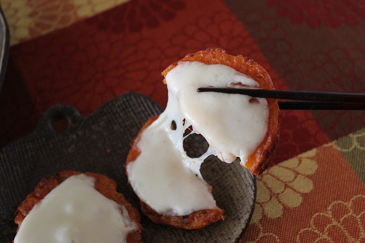 一度オーブントースターなどで焼いたキムチチヂミに、ピザ用チーズなどのとろけるチーズをのせても美味しいですよ!
