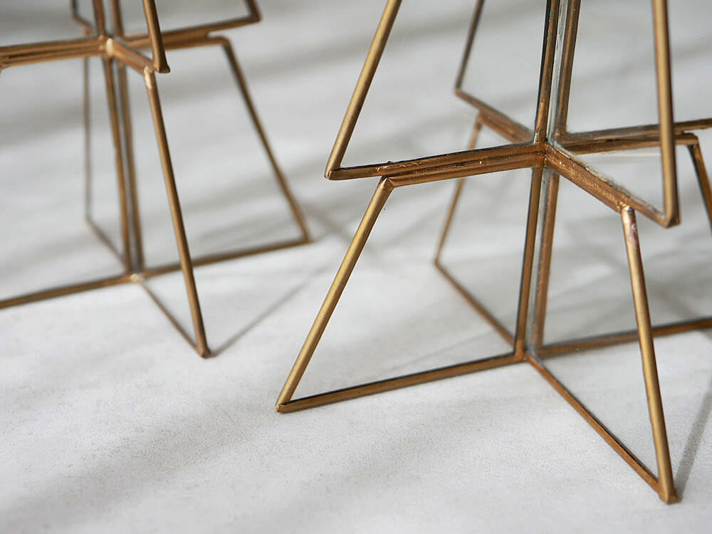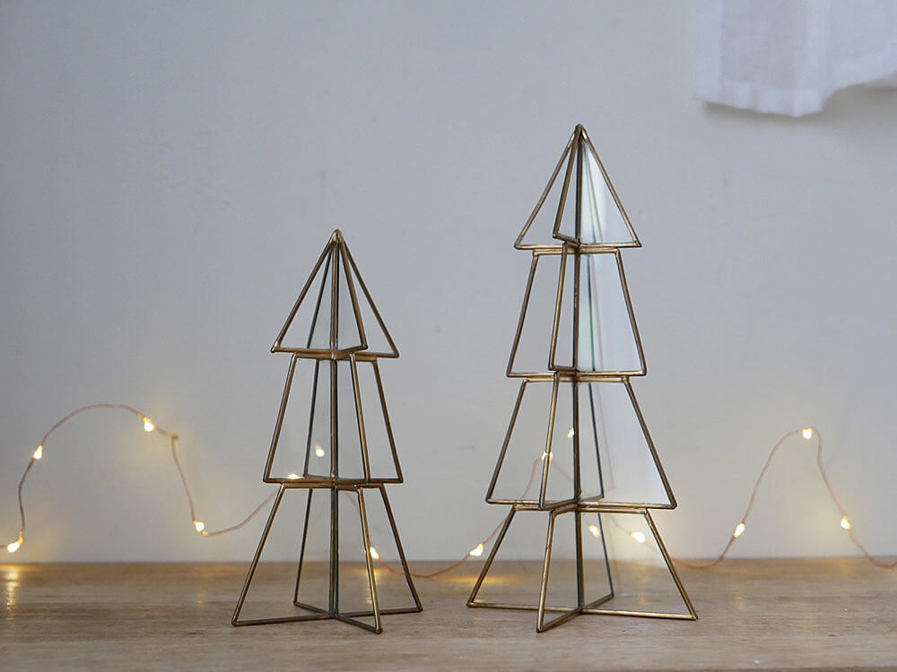 職人がひとつひとつ真鍮のフレームにガラスをはめ込んで作った、落ち着いた佇まいのツリーオブジェ。