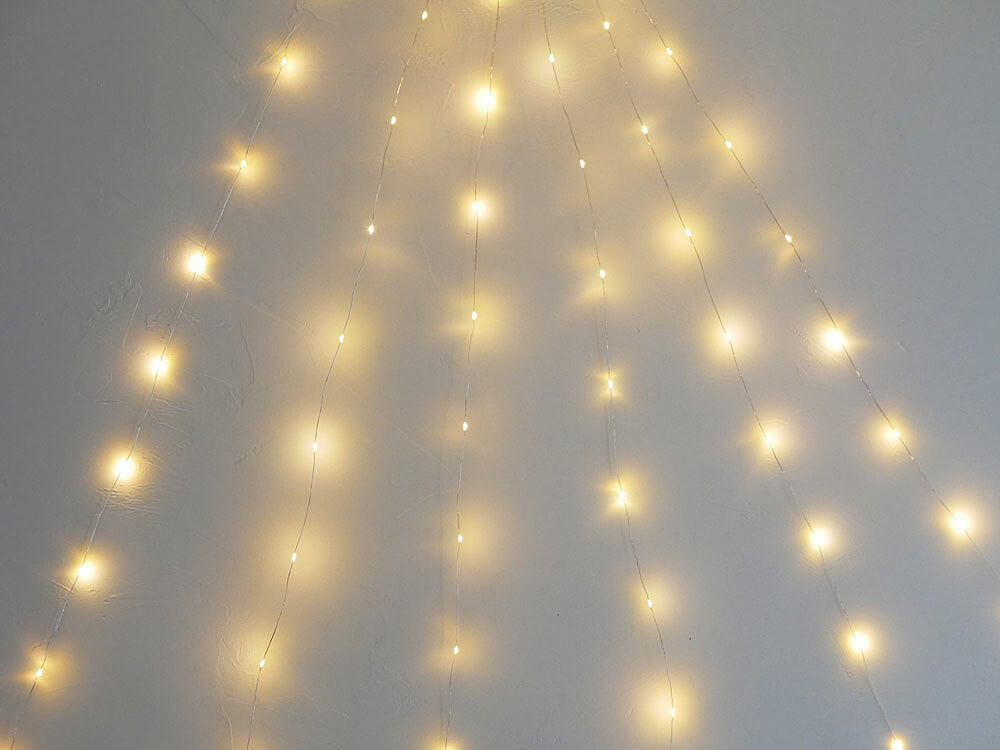 さらに豪華にしたいときは、小さめの電球がたくさんついたガーランドライトもおすすめです!