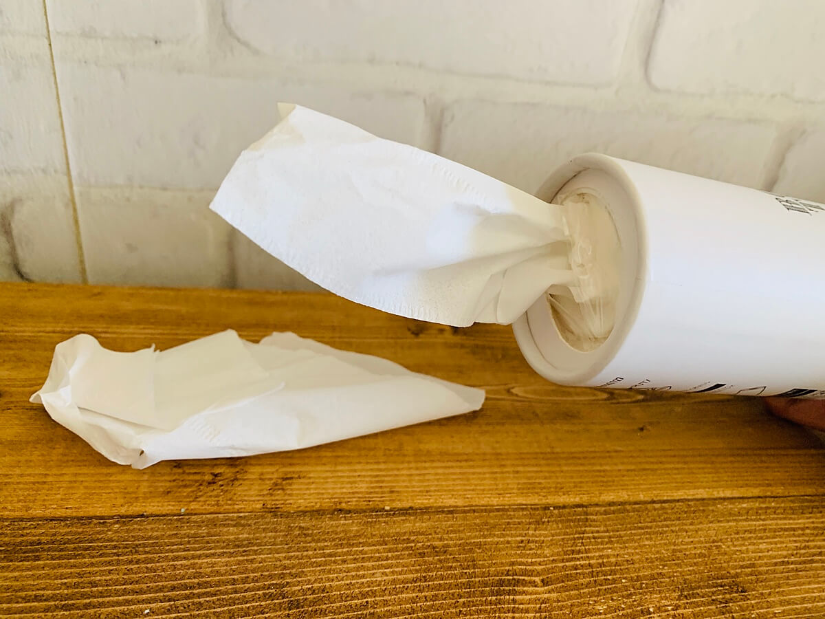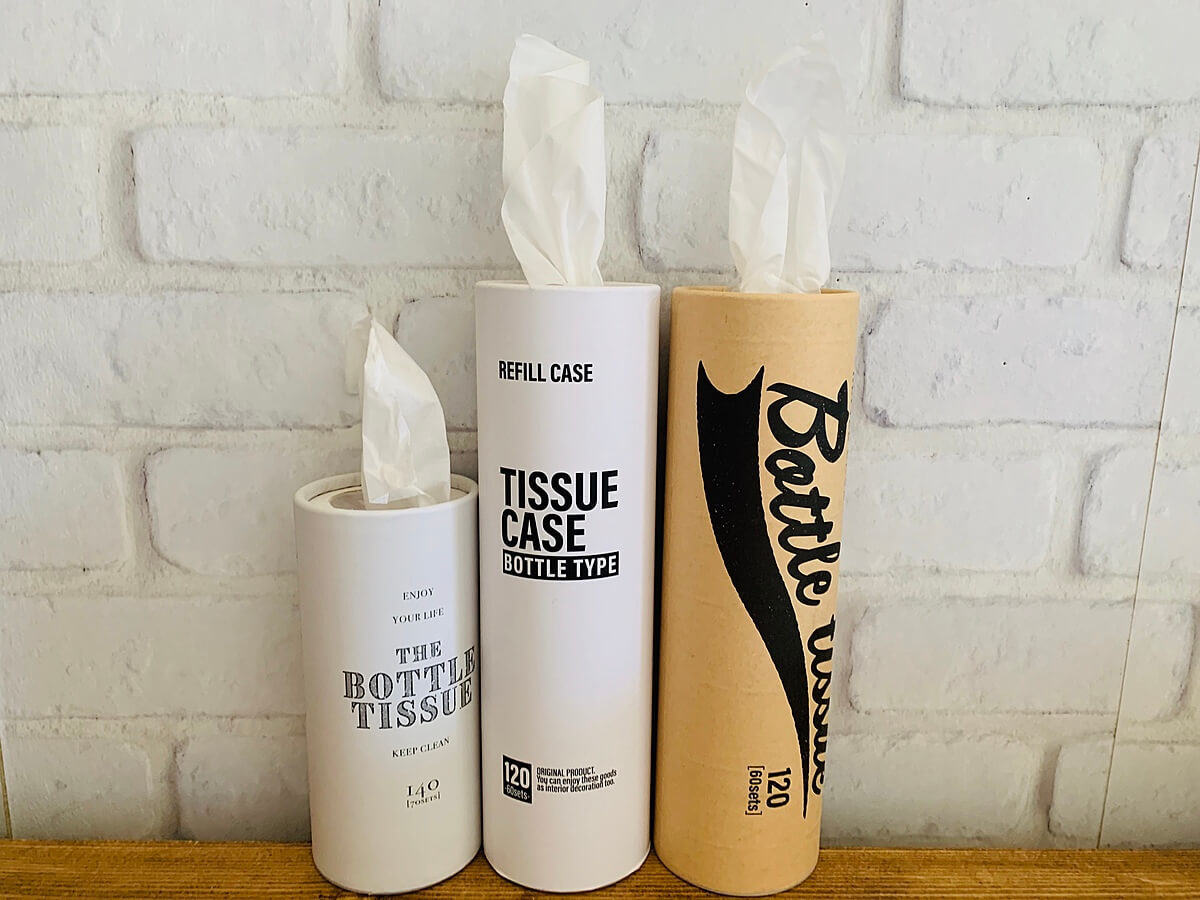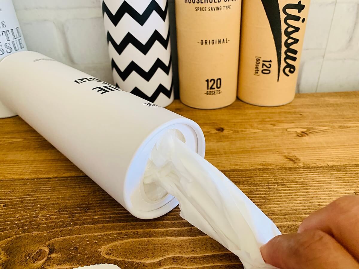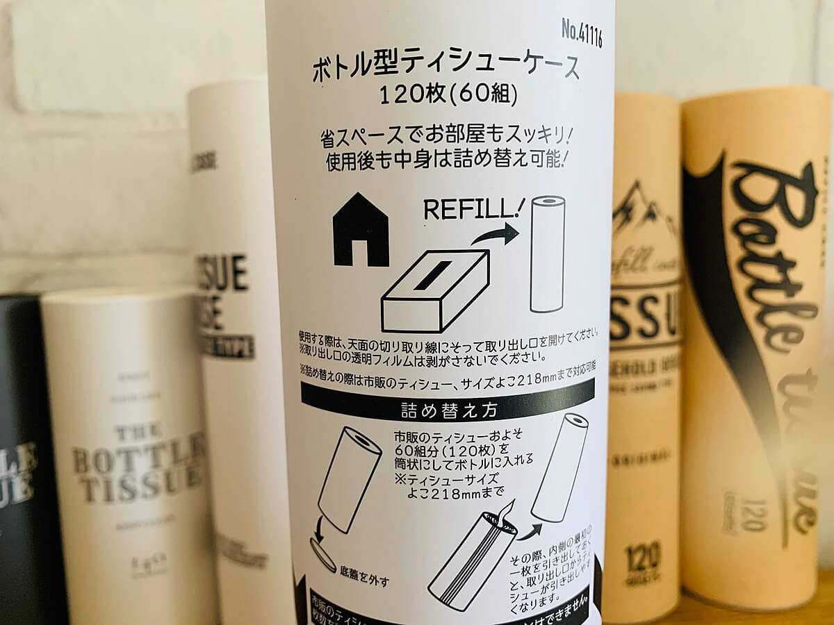 筒状ティッシューはペットボトルサイズなのでバッグの中に入れて置いても良い商品です。是非一度店頭で手に取ってチェックしてみてくださいね。