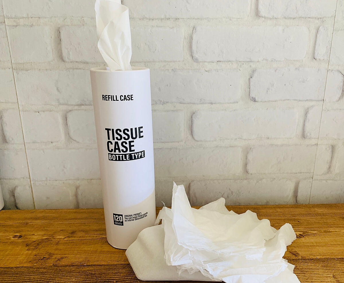 今回はセリアで発見した新型ティッシューケースのご紹介です。長方形の箱型が当たり前の箱ティッシュ。