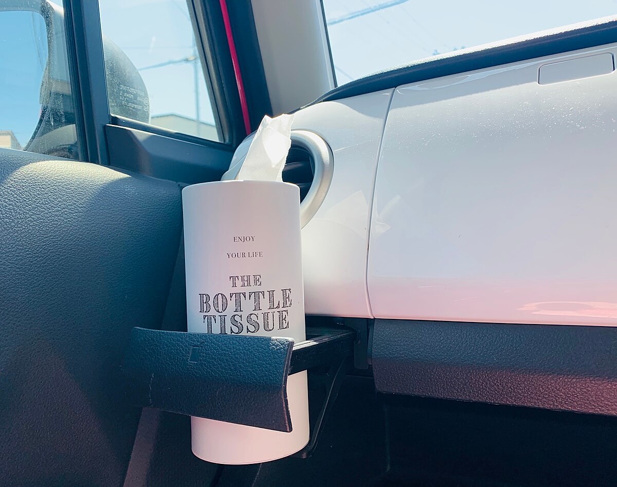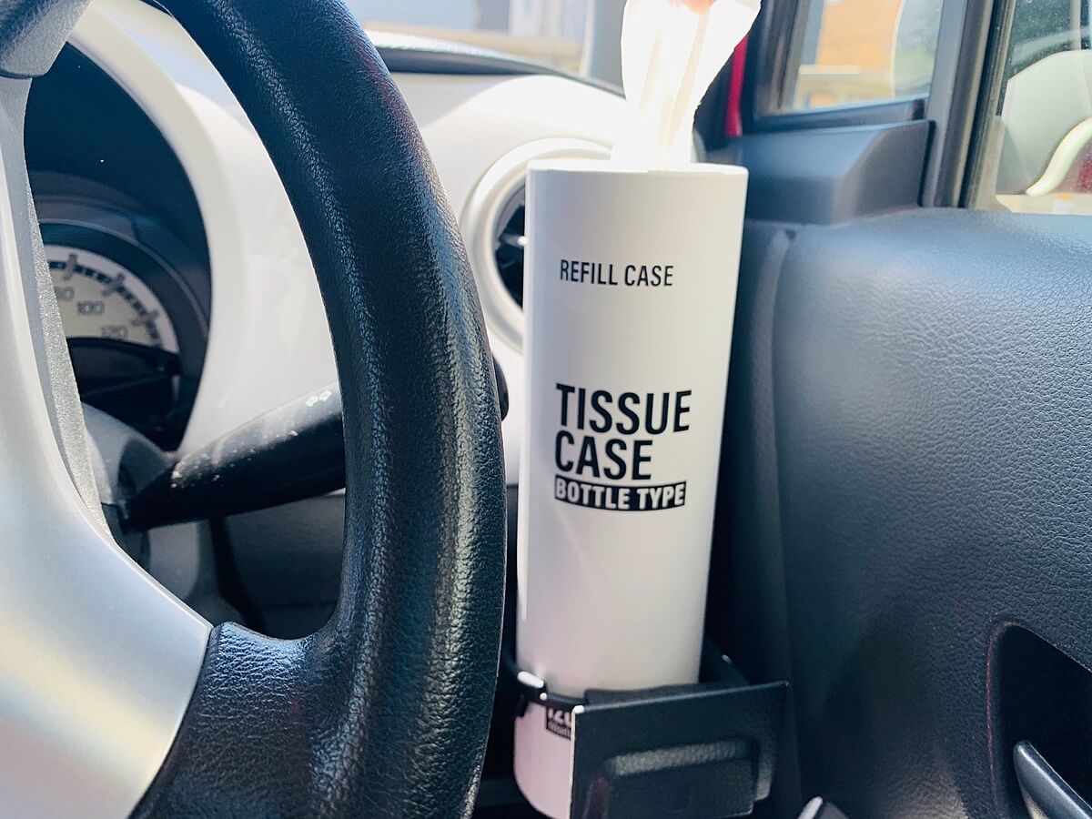 この筒状ティッシューならペットボトルと同じサイズなのでホルダーに入れておくことが出来ます。