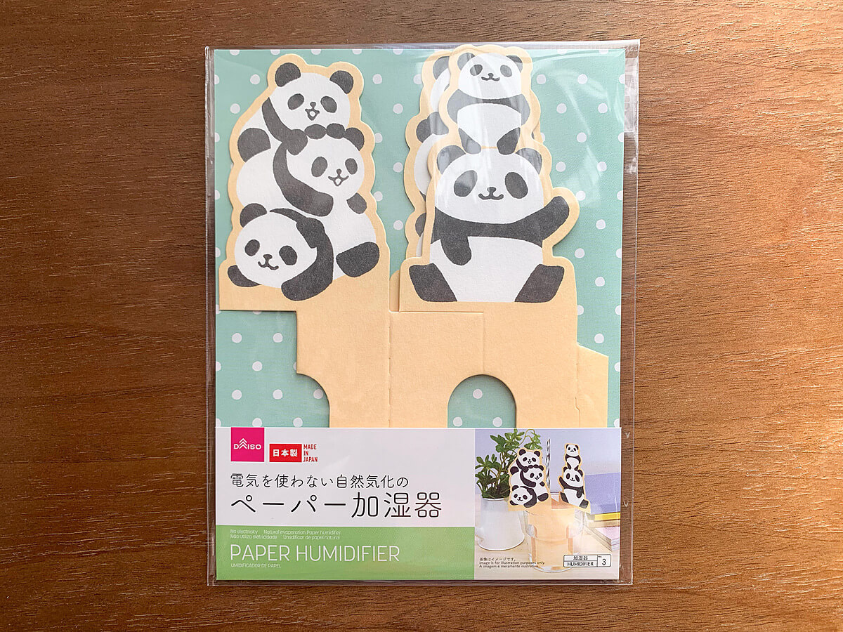 ダイソーでは、気軽に使用できるペーパー加湿器がありました。お値段は安定の100円(税別)なので、チャレンジしやすいですね。
