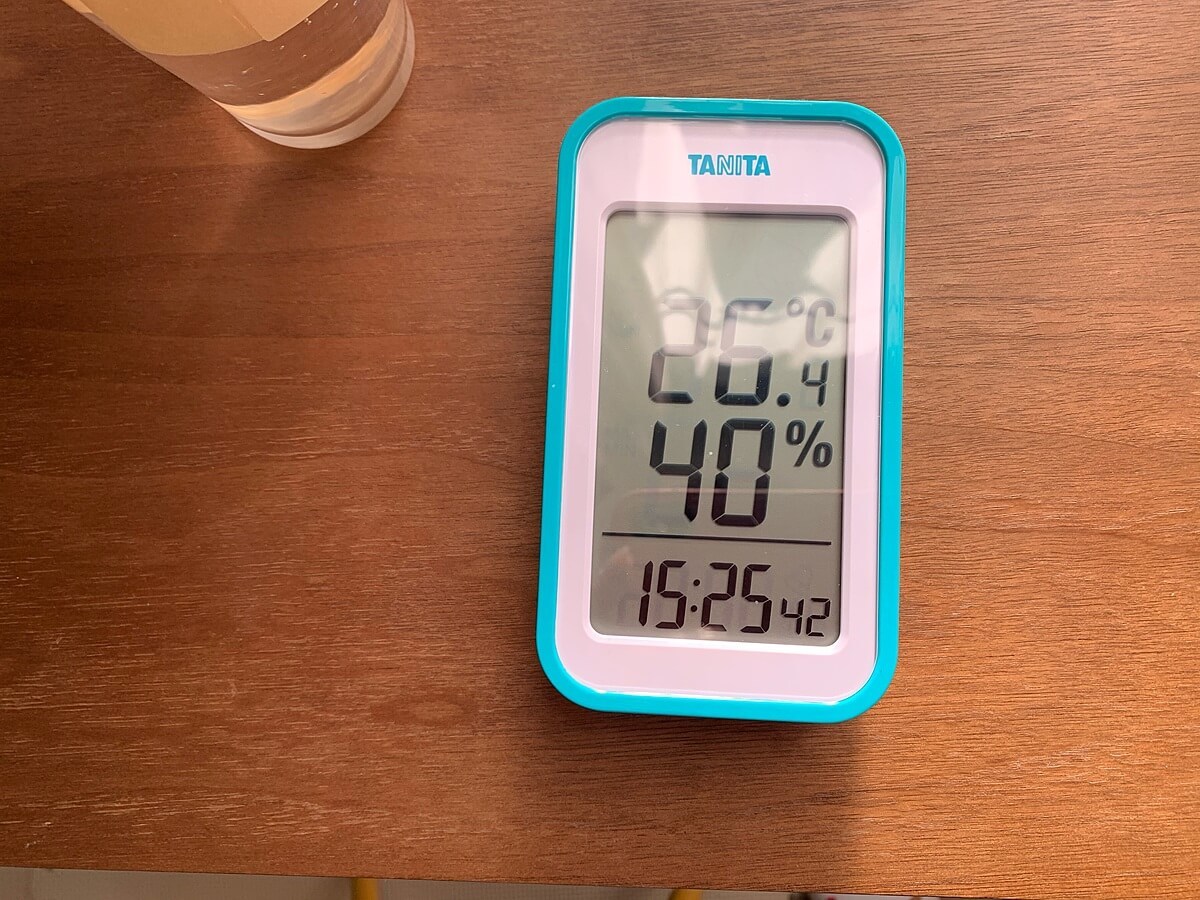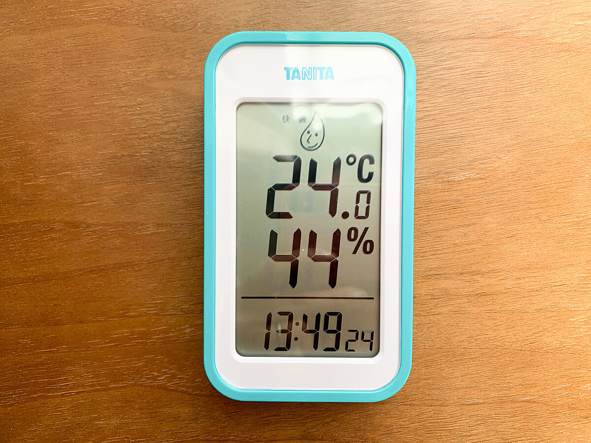 ちなみに我が家で使用している湿度計は、TANITAのもの。 子ども達が生まれたときに、湿度の管理をするために購入しました。 快適な湿度かどうかピチョン君(子どもたちが勝手に名付けた湿度計の名称で、ダイキン工業さんのキャラクターとは無関係です笑)の表情でわかるようになっているので、一目でわかるところがお気に入りです。