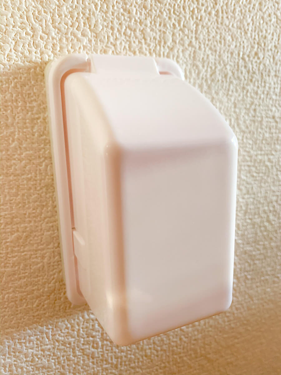 上記の小さなコンセントカバーを小さな子どもが誤飲する心配があるときには、こちらのボックスタイプのコンセントカバーを使用して安全性を高めると良いでしょう。