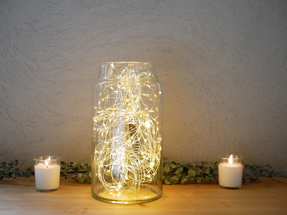 自宅に置くのはむずかしいですがワイヤーライトなら手軽に素敵な冬インテリアを演出できます。