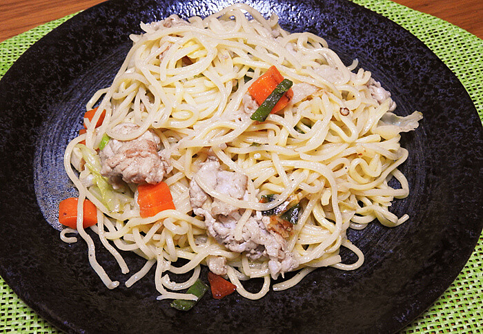 上記写真は1食分の麺を使って作りましたが、キャベツやピーマンなどでかさましにかさましを重ねたところ、結構ボリューム感が出ました。野菜かさましバージョンの焼きそばを作りましたが味が薄いと感じることなく、ソース焼きそばを美味しくいただけました。