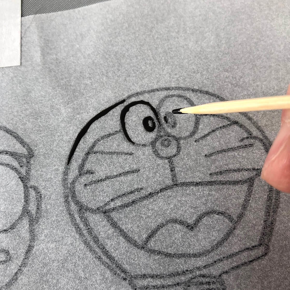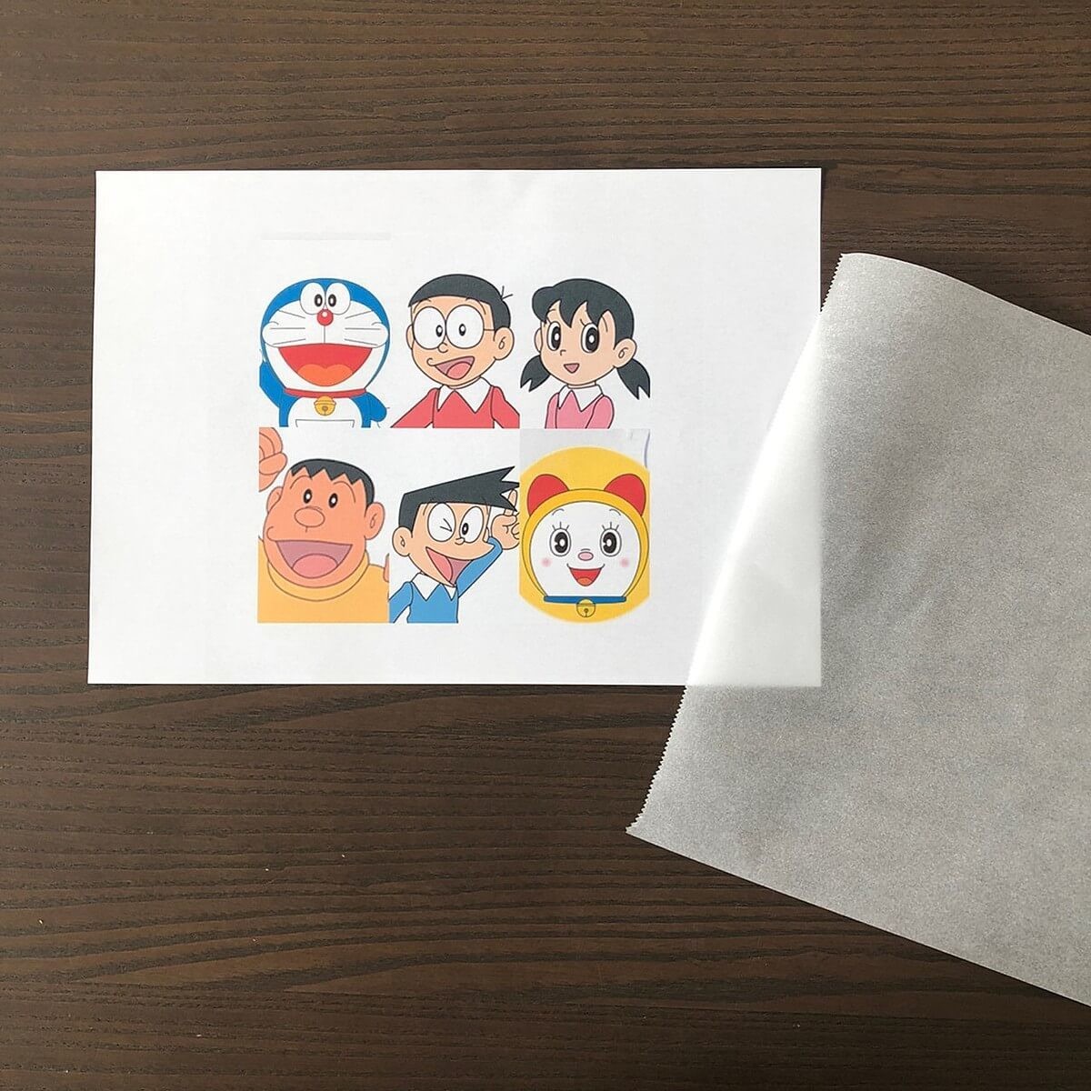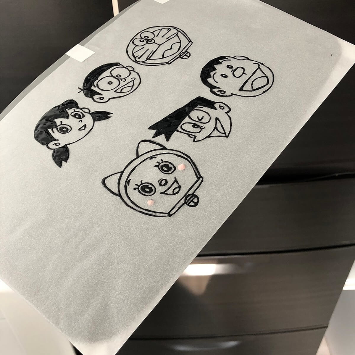 用意した絵にクッキングシートを重ねてペンで枠をなぞっていきます。