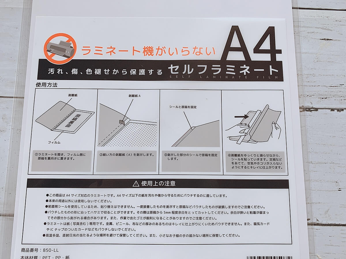 ラミネートしたいけれど、機械を買ってまでは欲しくない方へオススメ商品です。