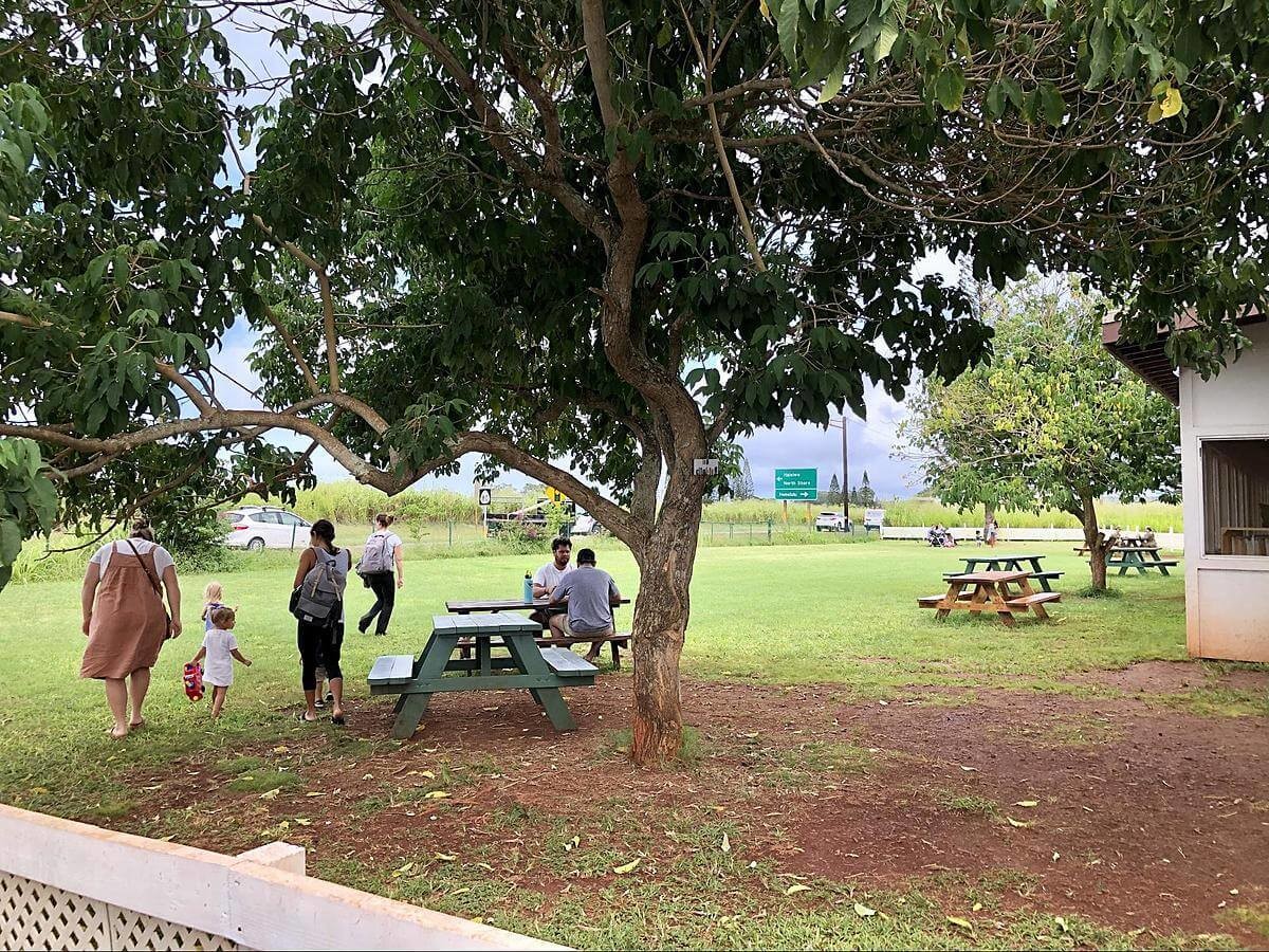 ピクニックエリアは、広い芝生の上で子ども達が走り回って遊ぶことが出来ますし、木陰のベンチはハワイのゆったりした時間を満喫できる心地よい場所です。小さな子どもも安心して遊べるので、レジャーシートを持参してプレイデートを楽しむハワイママ達に人気のスポットでもあります。芝生の隅には、子育てをする野生の鶏の姿も見られますよ。