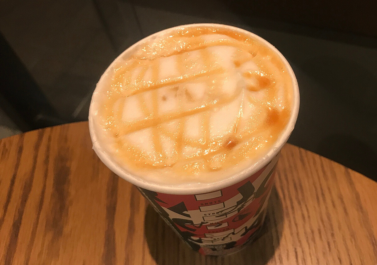 こちらは、キャラメルマキアートに使用されているシロップをキャラメルシロップに変更したカスタマイズドリンク。