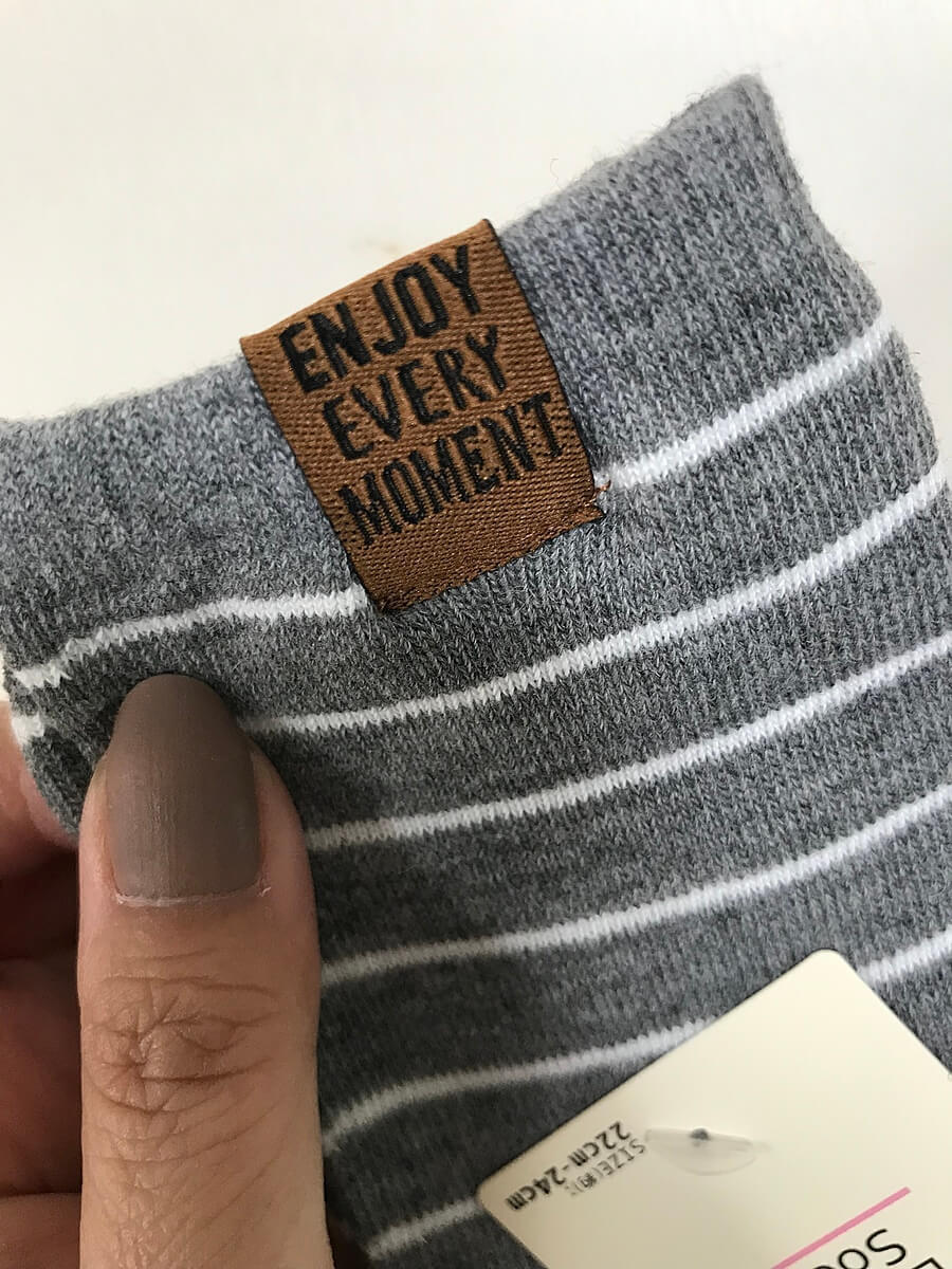見てください。靴下本体とタグのカラーの絶妙な組み合わせ!