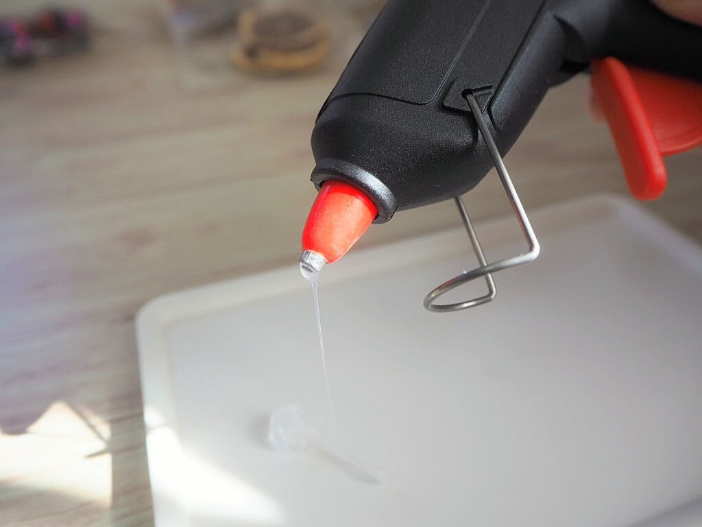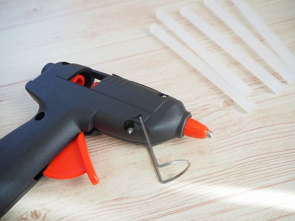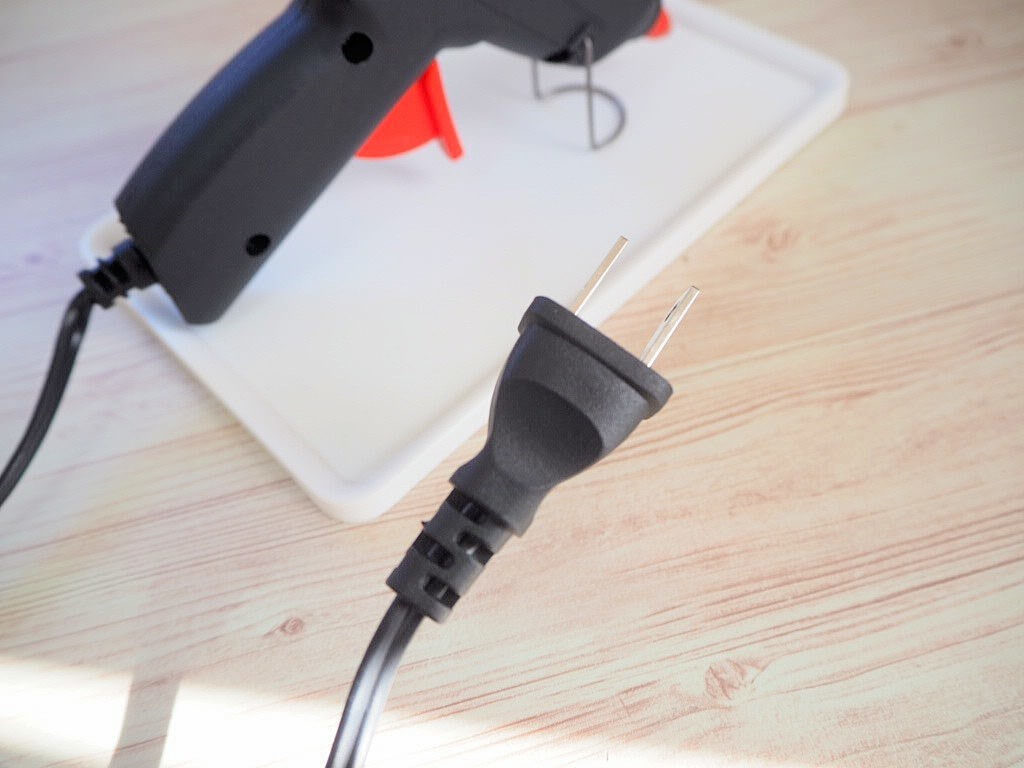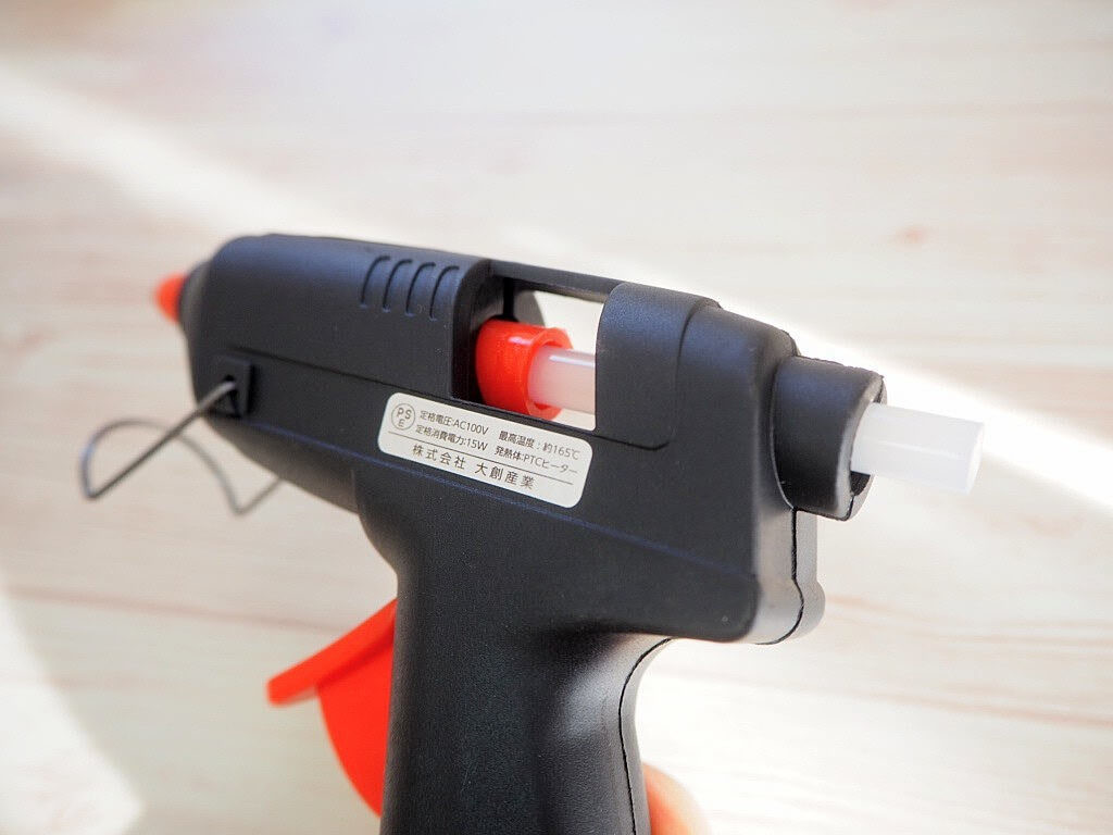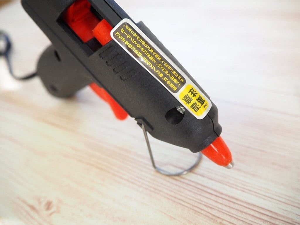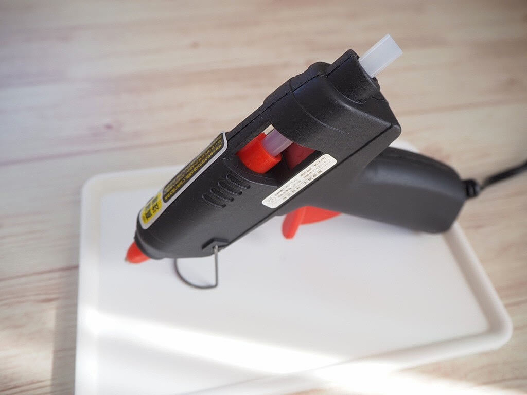 また作業中は先端からグルーが垂れてくることもあるため、グルーガンを置く用の耐熱プレートなどを用意しておくと安心です。