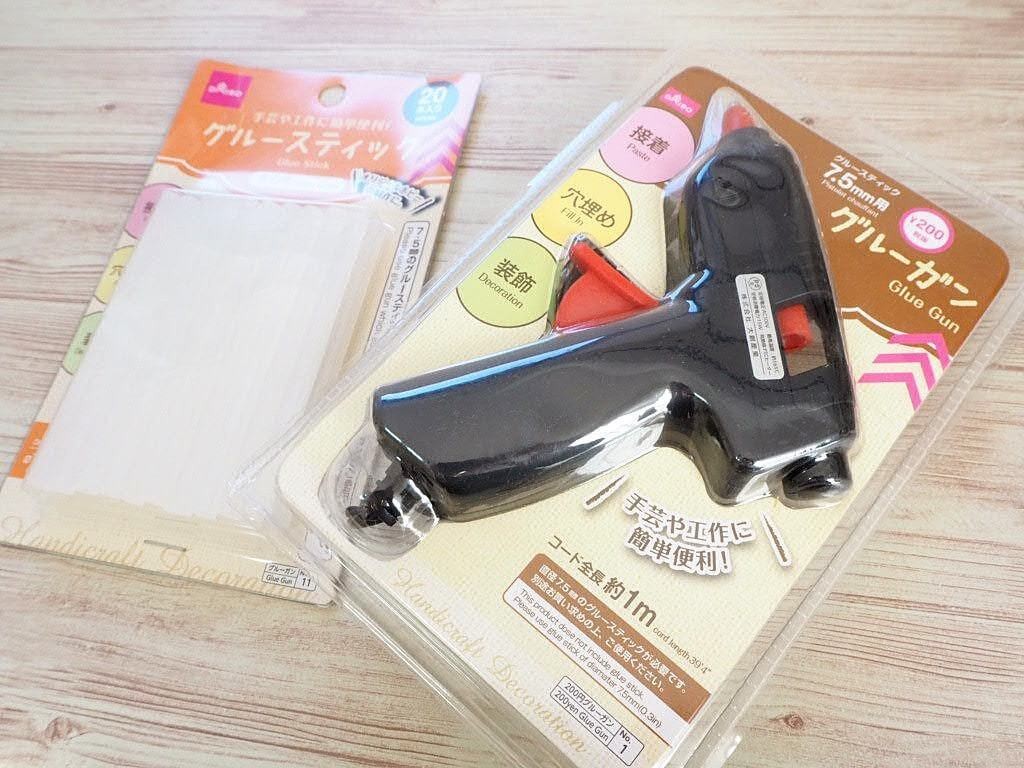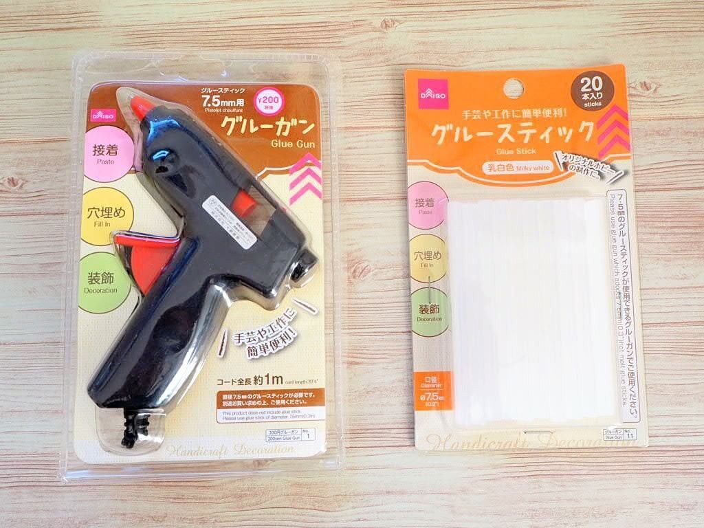 そんな方におすすめなのが100均グルーガン!ダイソーなら200円(税別)と驚きの安さで購入できるため、初心者にはもってこいの商品だと思います。