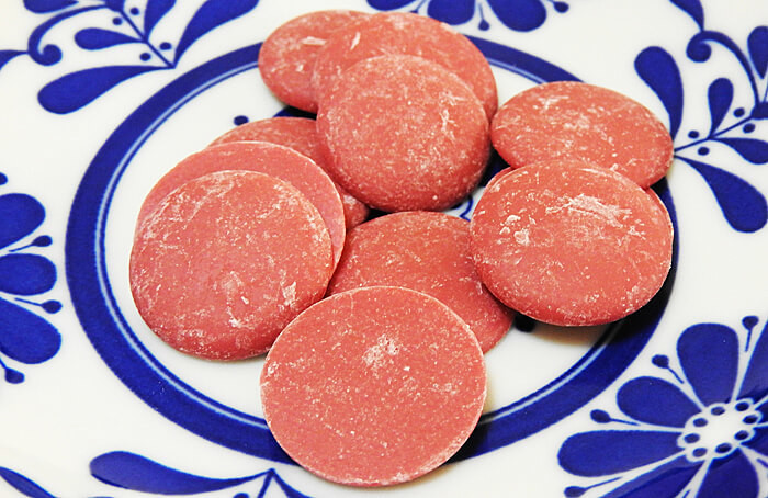 写真でもお分かりいただけると思いますが、ベリーチョコレートはピンク色をしていますので、バレンタイン用のチョコレートやチョコレート菓子作りにも活躍できそうです。