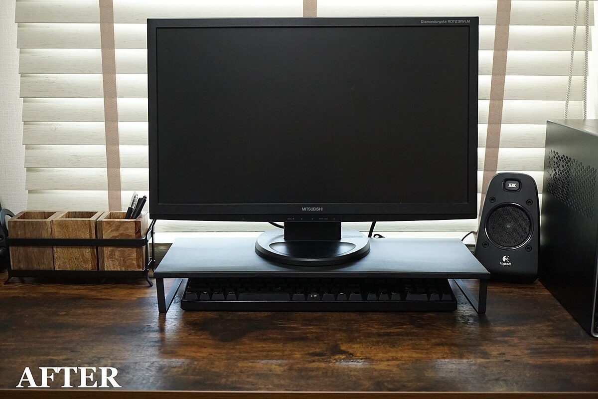 モニター台を設置することでキーボードをモニター台の下に収納できるようになり、作業スペースが広がり使いやすくなりました。