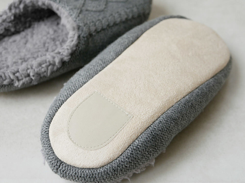 お洒落なケーブル編みセーターのような、見た目にもあたたかなルームシューズ。