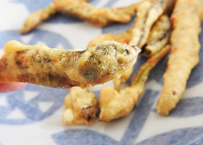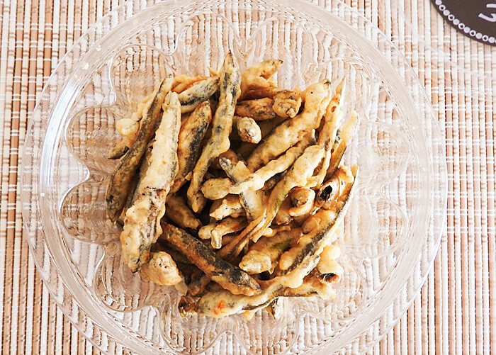 カリカリとした食感でいりこのうまみがギュッと凝縮。細かく砕けたいりこが少々口の中に残る感覚はありますが、さほど気になりません。また、塩っ気がやや強めですがお酒とよく合います。なお、結構厚めに衣がついていますが、脂っこさはなく非常に食べやすくて気に入りました。