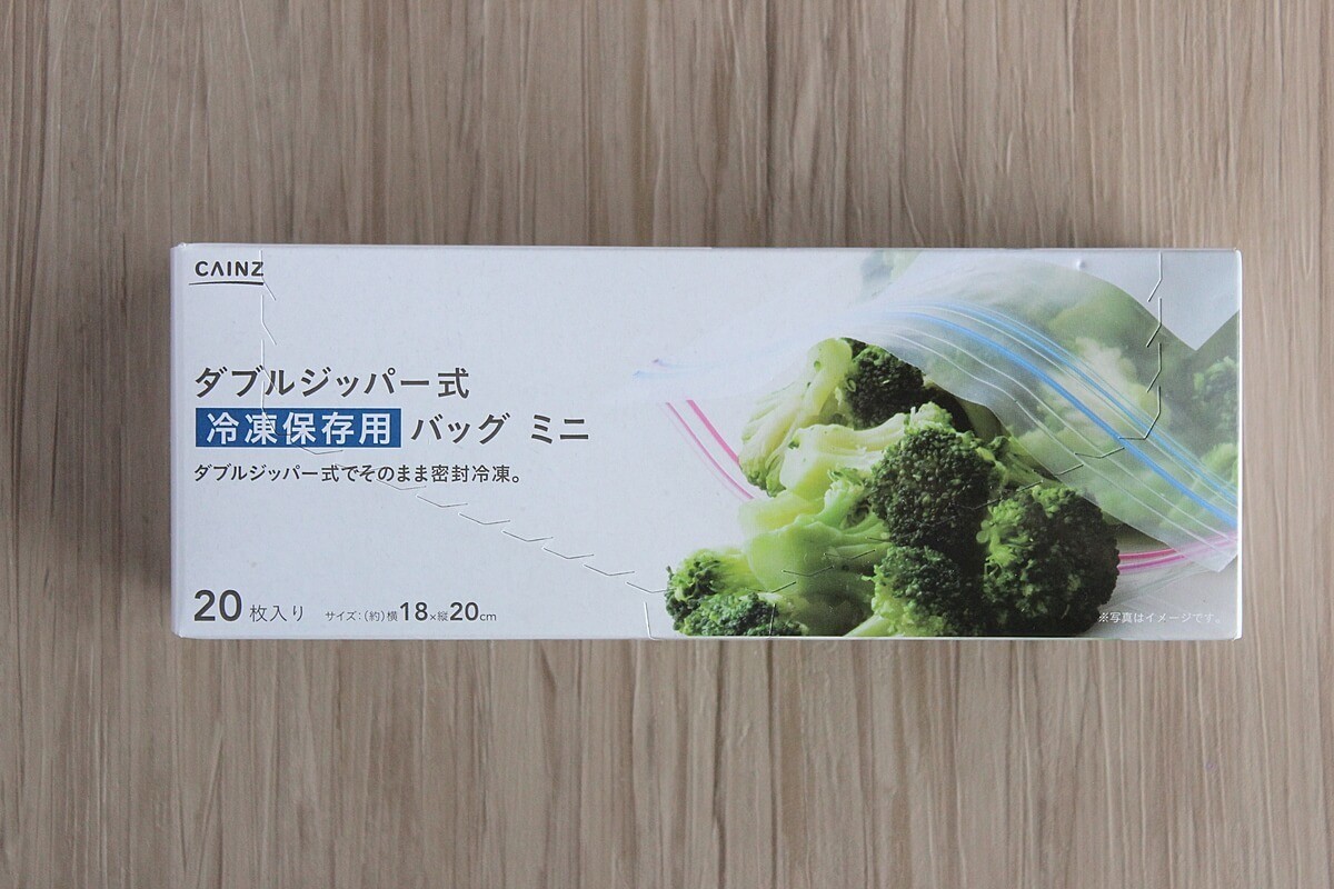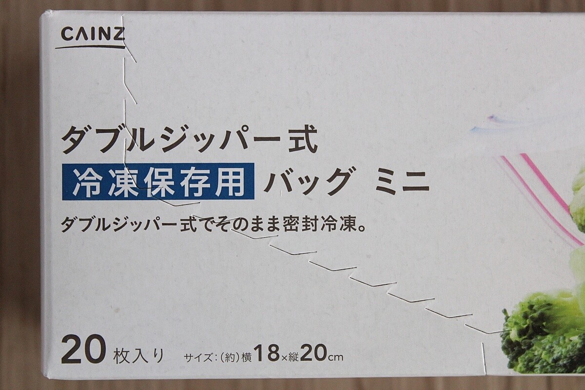 業務スーパーの冷凍保存用バックも同じ大きさで、25枚入104円(税込)で購入することができますが、ジッパーは一つです。